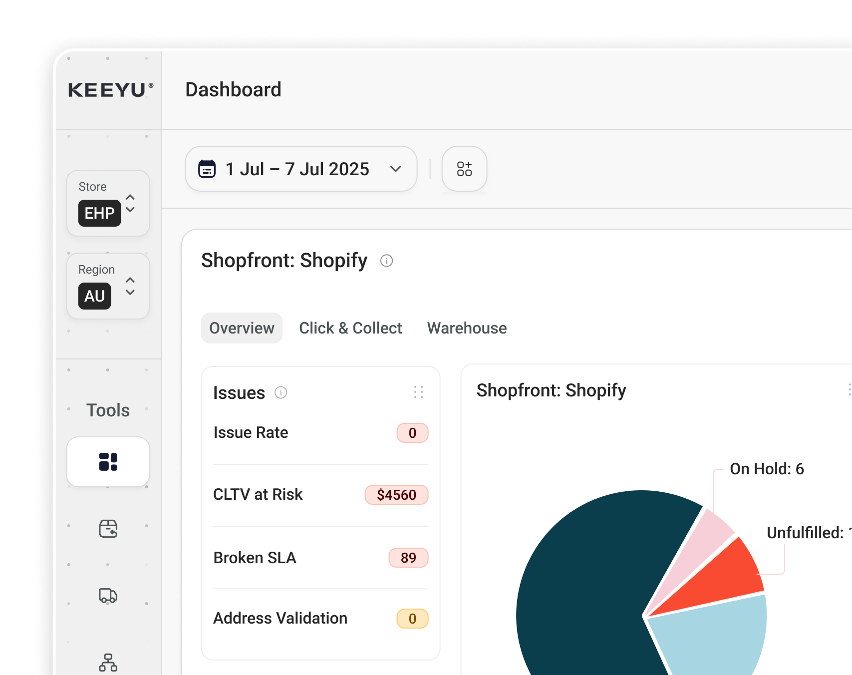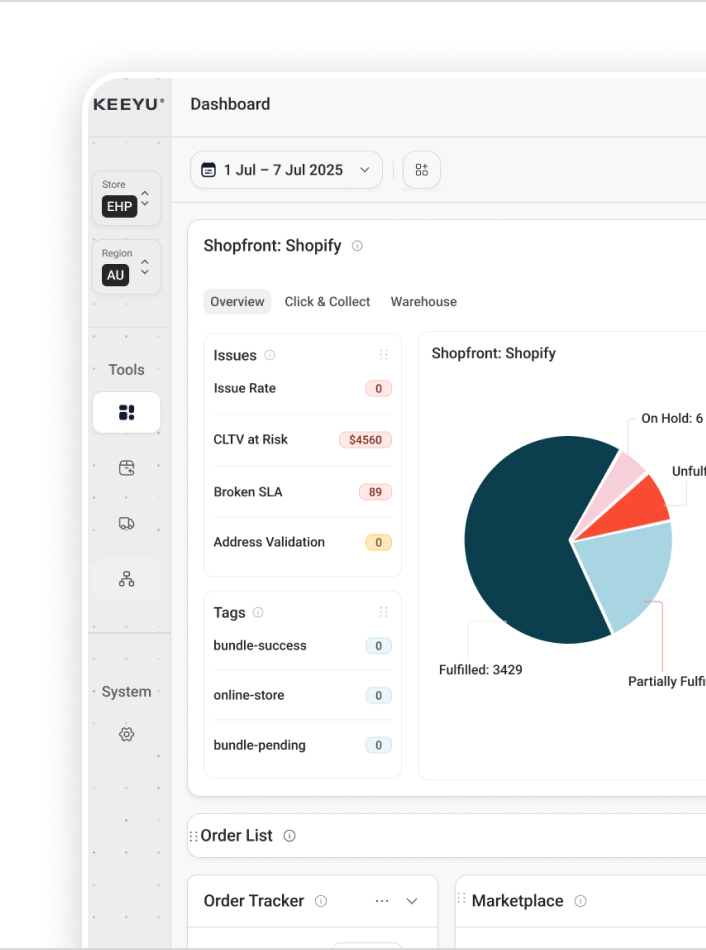Real-time monitoring across payment, fulfilment, shipping, and returns.